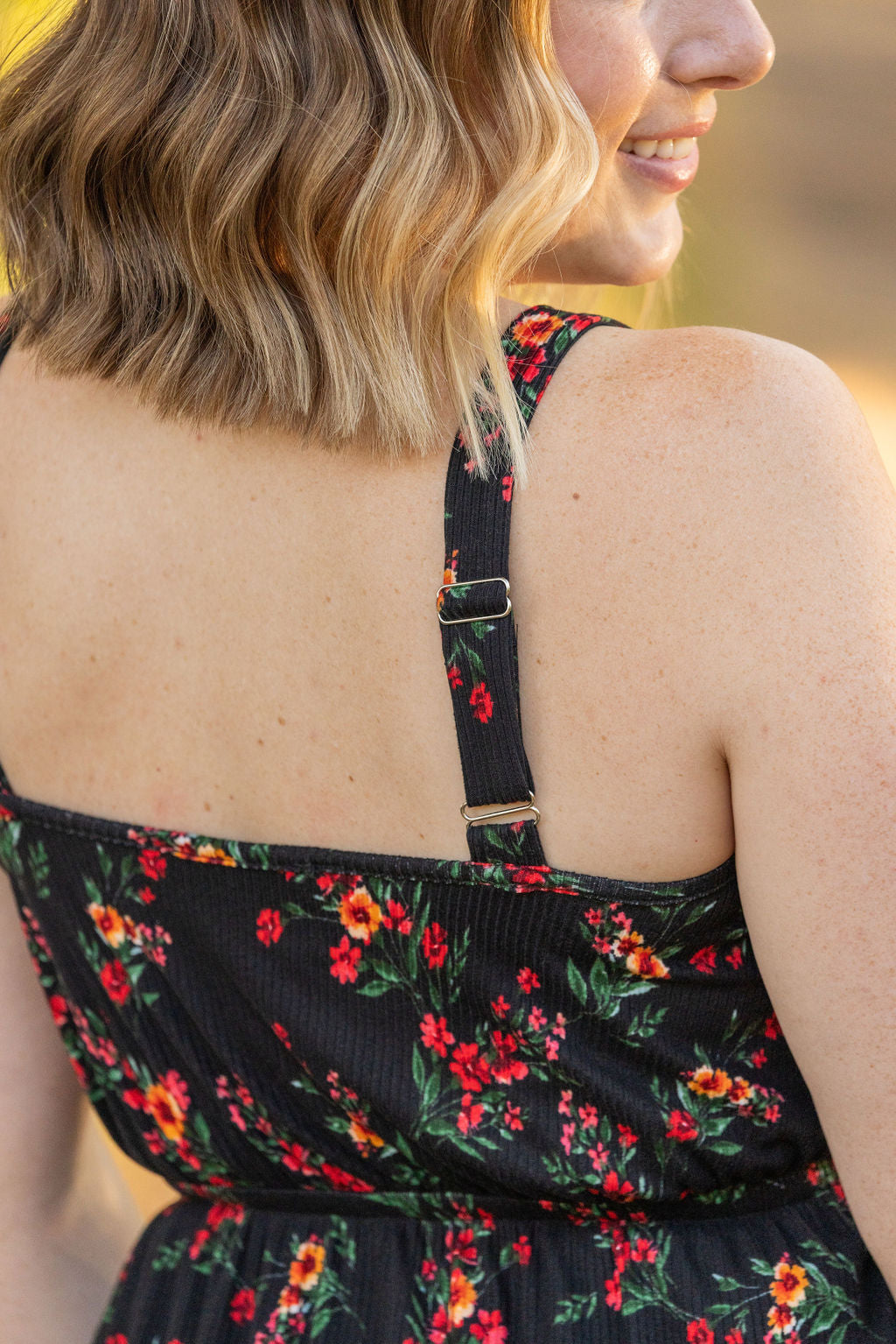 IN STOCK Reagan Ribbed Midi Dress - Black Floral FINAL SALE